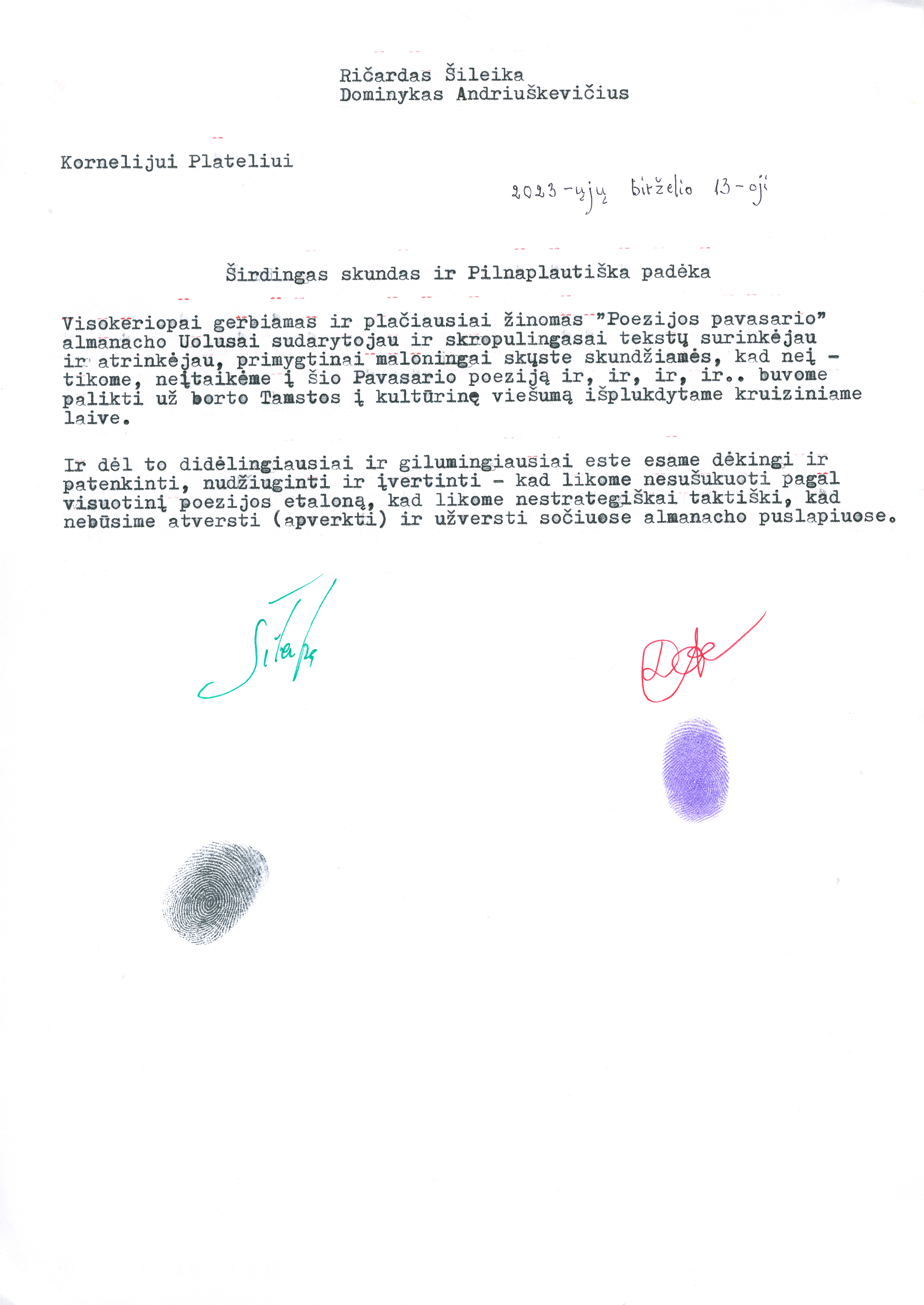 Kornelijui Plateliui – Širdingas skundas ir Pilnaplautiška padėka