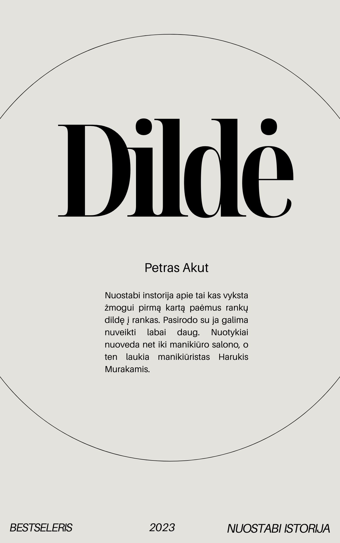 Debiutinis lietuvio autoriaus, gyvenančio Taivane, romanas. Stiliumi šiek tiek primena vadinamojo japonų neomagiškojo realizmo kūrinius. Romane pasakojama apie žmogų, pirmą kartą paėmusį į rankas dildę. Pasirodo, su ja galima nuveikti labai daug. Nuotykiai nuveda net iki manikiūro salono, o ten laukia manikiūrininkas Murakamis…