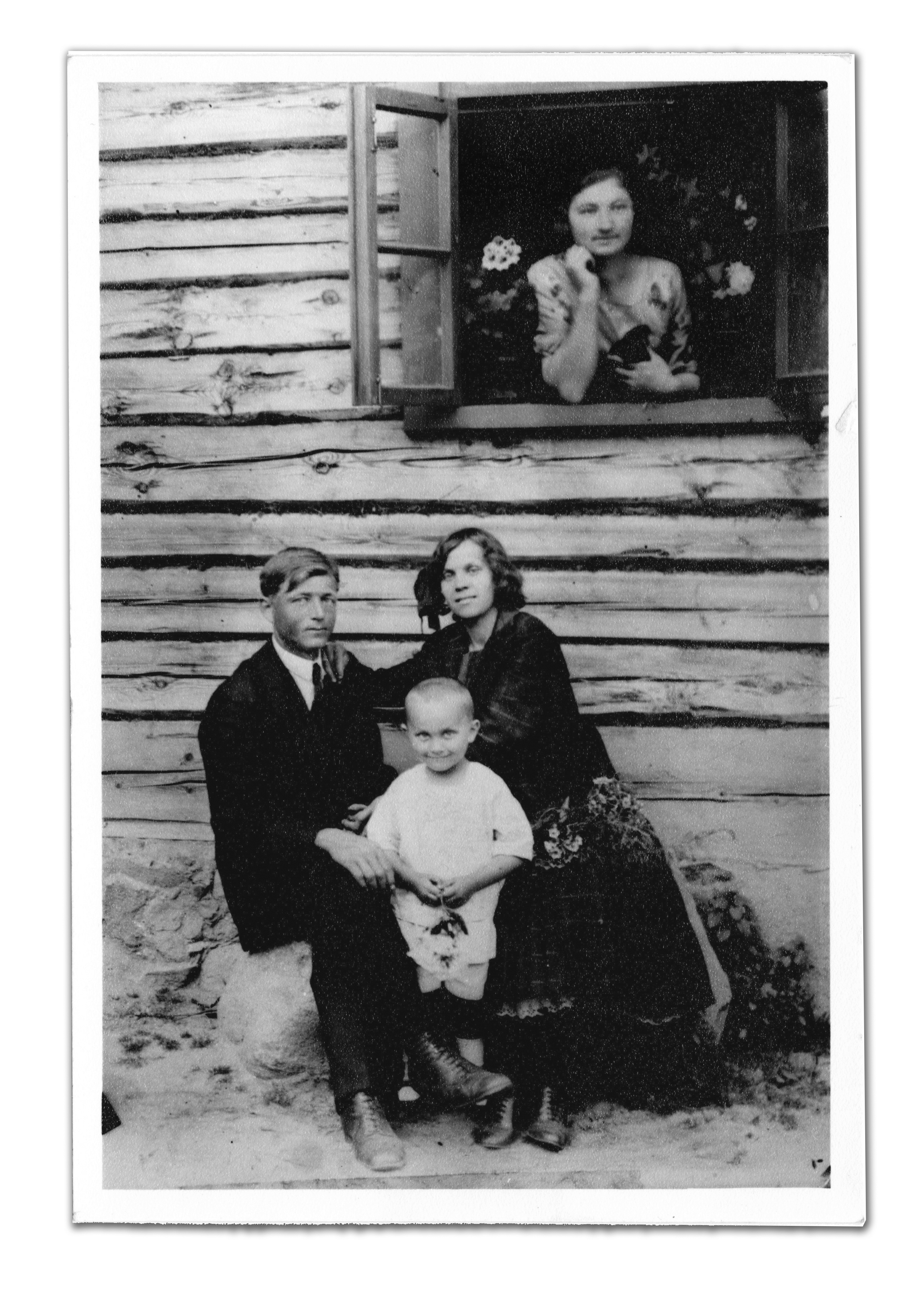 Tiesą pasakius, maldaknygių abrozdėliuose panašiai vaizduojama Šventoji Šeima. Sėdi ar stovi Marija su Juozapu, o tarp jų kūdikėlis Jėzus. Kartais irgi su mįslinga šypsenėle. Beje, besišypsantys vaikai senose nuotraukose – didelė retenybė. Esu peržiūrėjęs daugybę prieškariu fotografuotų Pirmosios Komunijos portretų, būriai vaikų, bet šypsena tik viena kita. Paprastai pačių mažiausiųjų veideliuose. Visi kiti rimti, net rūstūs. Lyg kokie seniai. Tarybiniais laikais būtų sakę, jog tai vargingos vaikystės įrodymas. Parduotos vasaros ir panašiai. Bet iš tiesų turbūt kalčiausias pats fotografijos seansas, įvykis, su visais pasirengimais ir suaugusiųjų nurodymais: nejudėti, nesidairyti į šalis, neišsižioti, neužsimerkti. Taip ir suakmenėja vaikelis priešais objektyvą. Pirmosios Komunijos metu vaikus (ir ne tik juos) dar turėjo bauginti ir bažnytinė aplinka, šalimais stūksantis kunigas ar katechetė davatkėlė. Berniukui iš šios nuotraukos pasisekė, nes jis gimtosios trobos pasienyje, greta mamos ir tėčio, kurie visai neatrodo griežti nei pikti. Yra dėl ko šypsotis.